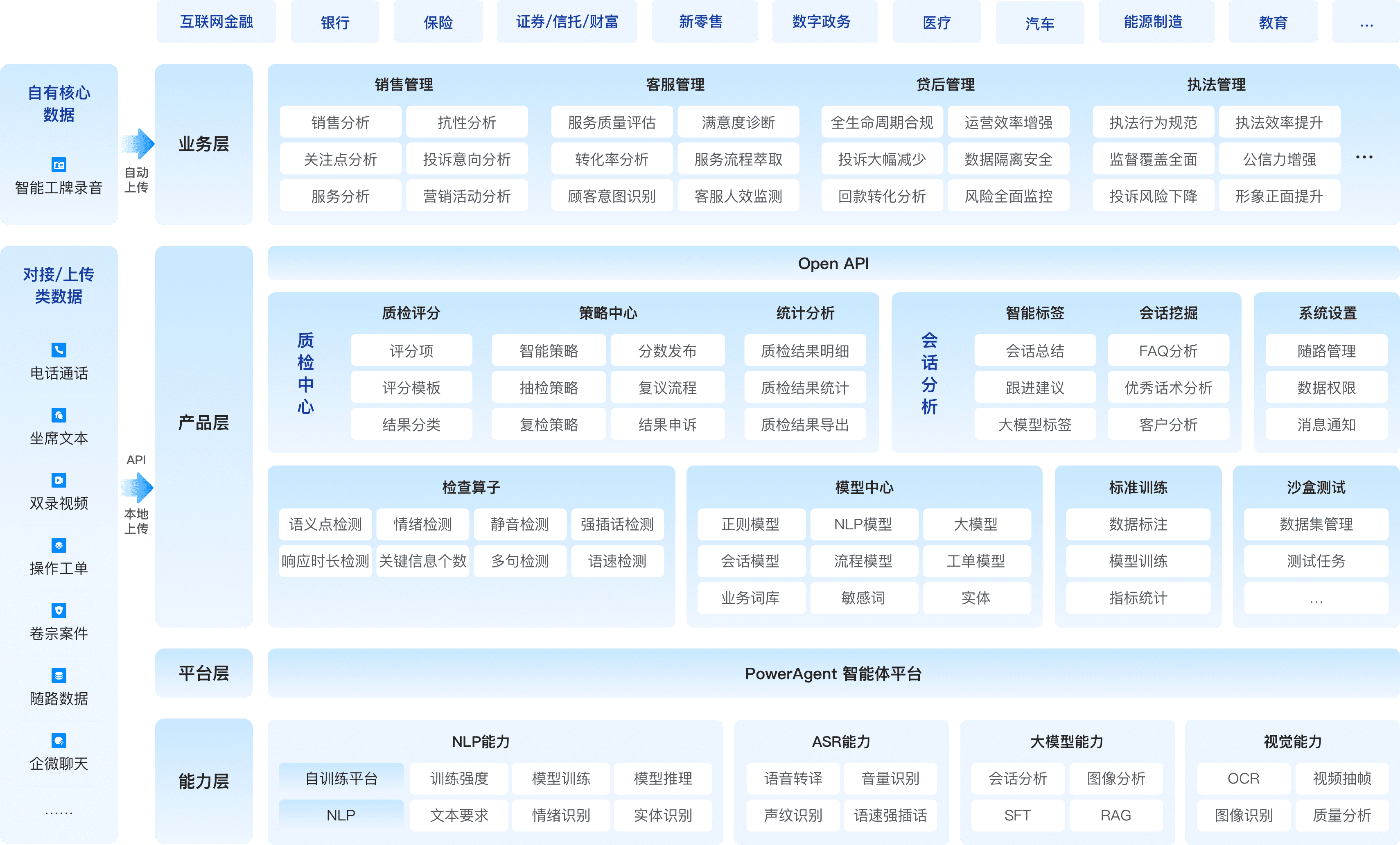 自研大模型生产管理平台结合行业领先的声纹识别与高质量ASR能力,支持线上线下全场景落地,提升语音识别与用户定位准确性,帮助企业从风险防控到客户洞察实现全方位智能化升级。