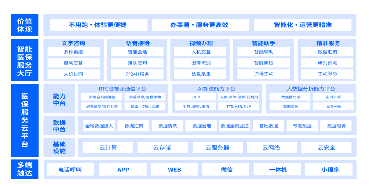 以“群众为中心”,打造“医保数智化服务平台”,把线下窗口,搬到线上办理。实现群众办事体验更便捷、客服受理工作更高效、政府管理运营更精准。