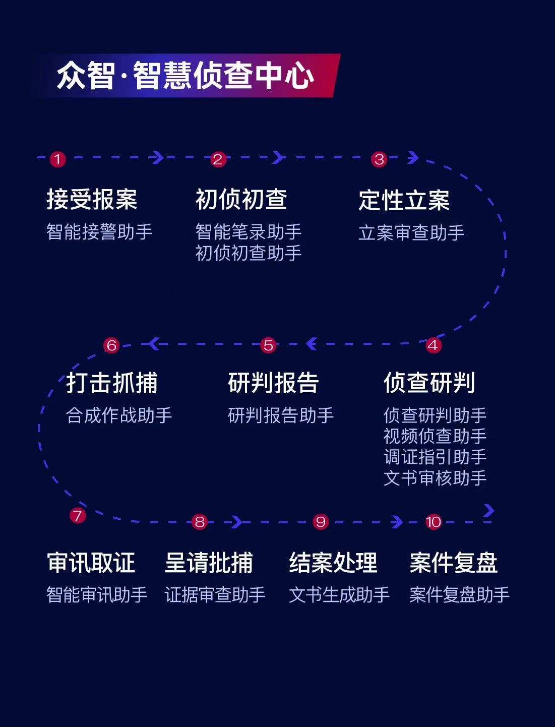 首批亮相的众智系列解决方案涵盖了众智智慧侦查中心、众智智慧法制中心以及众智智慧情指联勤中心。这三个中心各司其职,同时又紧密协同,全方位赋能公安工作。