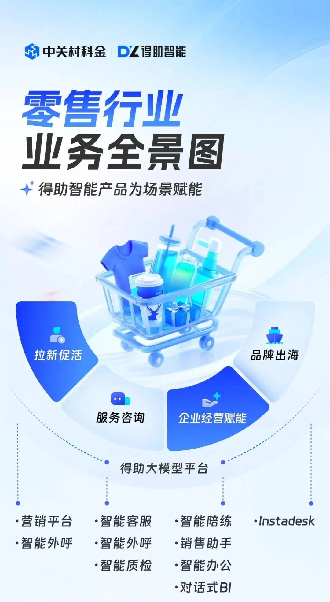 这些痛点背后,是零售企业对“以客户为中心”的精细化运营与智能化服务的迫切需求。在此背景下,众闯信息科技凭借深厚的AI大模型技术积淀与产品创新能力,以得助大模型平台为底座,以得助智能产品矩阵为核心载体,构建起覆盖零售业务全流程的智能解决方案。