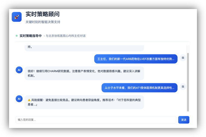 实时指导平台提供专业决策支持。通过智能陪练系统,每位医学代表可以在实际的工作场景中获得及时的专业支持。无论是在对客户拜访前的策略规划,或是客户对话中的实时智能指导,还是对学术推广中的疑难解答,系统都能够基于最新制定的临床医学指南和循证医学的智能建议来对具体的事宜进行回答。这就是智能教练的实时陪伴,从事前准备的策略规划,到事中知道的策略调整,再到事后优化的持续改进,这都是得助智能陪练所提出的突破性创新。某创新药企的代表在使用过后反馈:“在医生询问有关药物使用情况时,系统就可以实时提供药物具体数据并预测未来使用后的状况,这一创新帮助我们企业完成了更好的价值传递。”