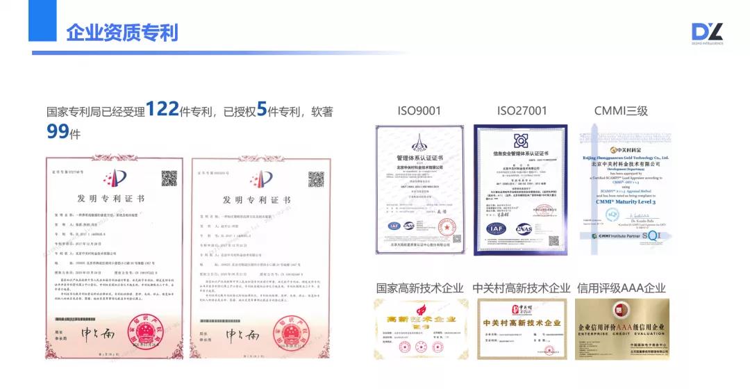 国家专利局已经受理122件专利 已授权5件专利 软著99件