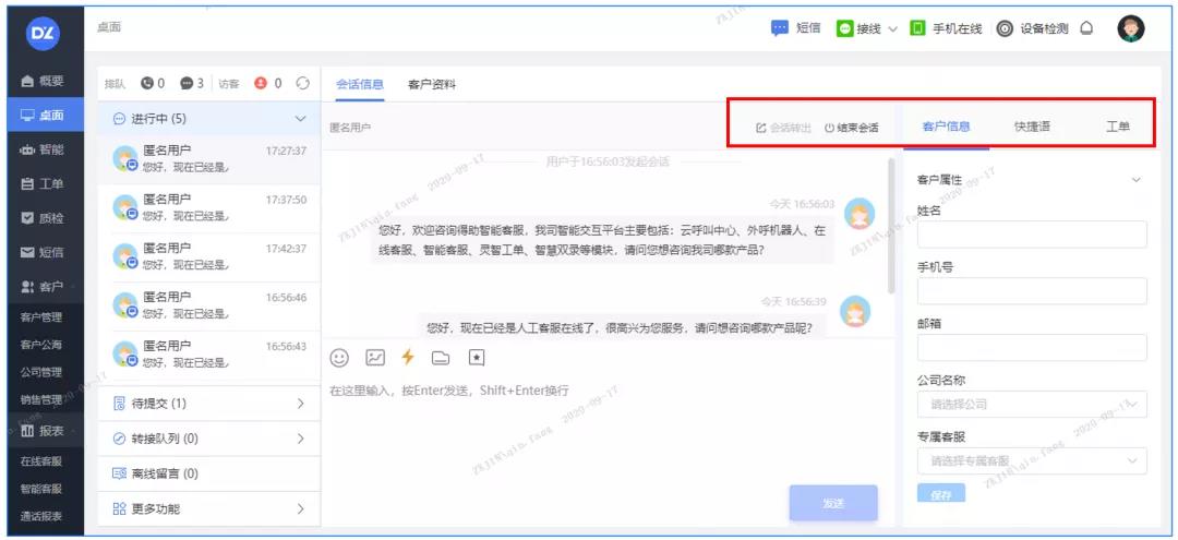 坐席在同一页面可完成电话、会话、视频等业务