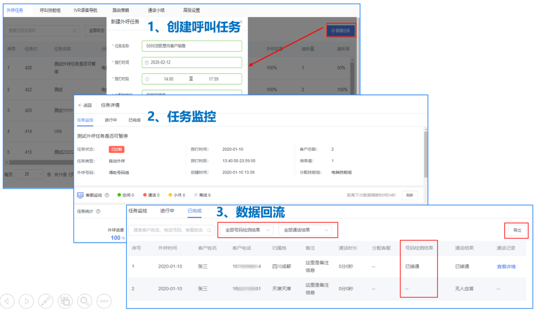 批量外呼、预测试外呼、空号检测、通话质检