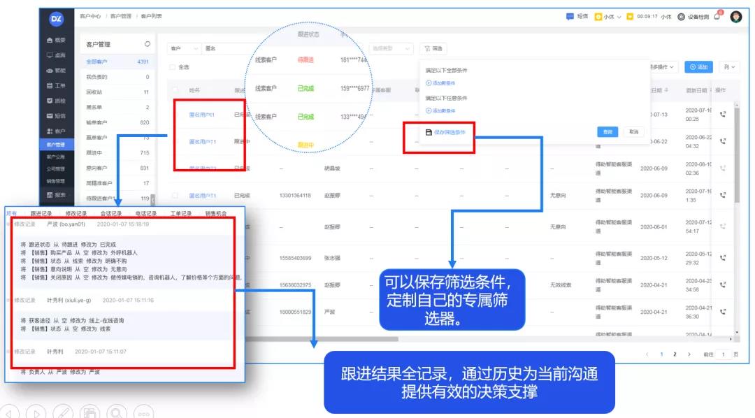 1、客户全流程跟进记录可追溯和查看;