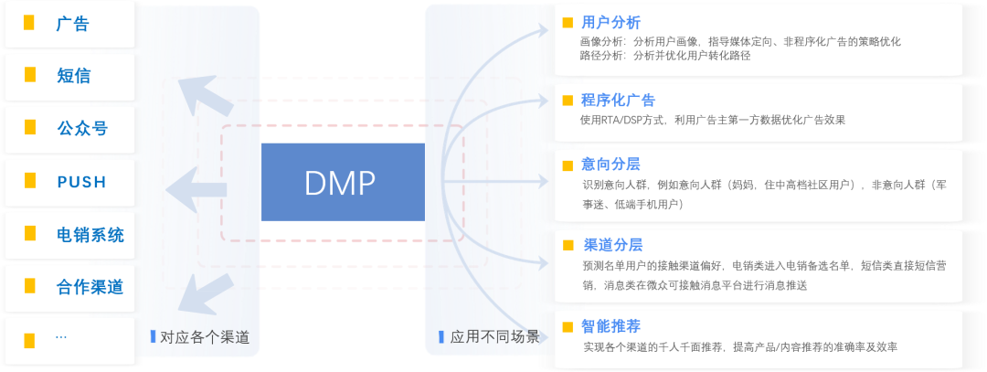 1、通过用户行为分析、客服ASR、客户经理聊天记录等销售记录数据搭建DMP系统,对客户进行画像、客户意 图与渠道进行分层。