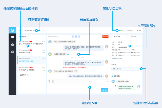 客服工作台:展示客服会员,购物信息,实现人工坐席服务能力大幅提升