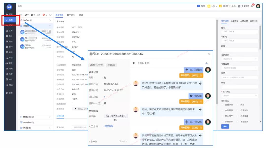 金融催收业务,传统的呼叫中心难以监控坐席话术等,导致投诉量大,线路易被封停