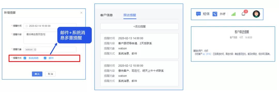 系统消息+邮件双重提醒保障可以针对单独重点客户