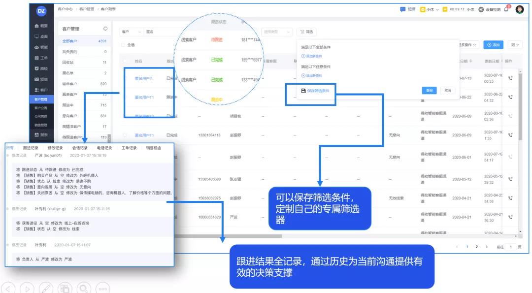 客户全流程跟进记录可追溯和查看