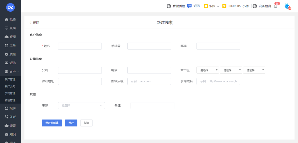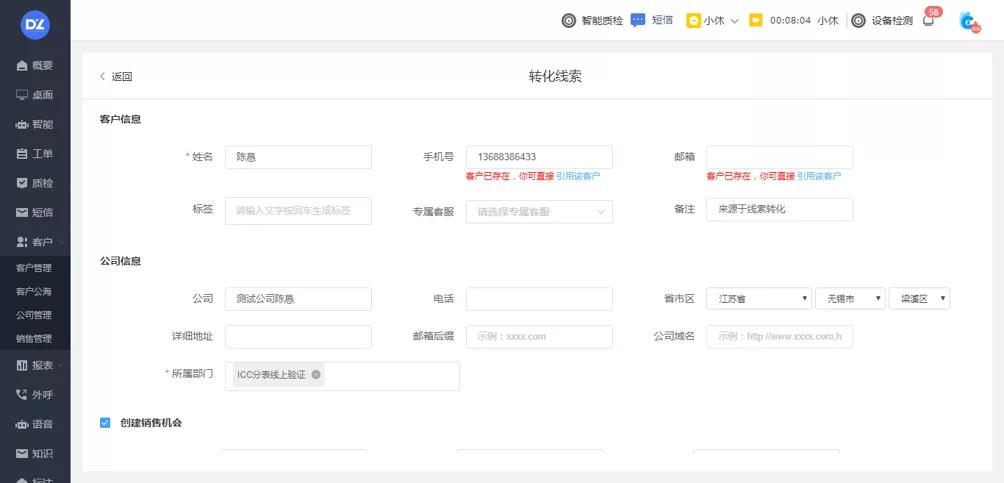 打通在线客服、智能客服、呼叫中心、智能外呼、工单等业务渠道,整合所有业务线的客户资源进入公海,同时支持手动创建和批量导入