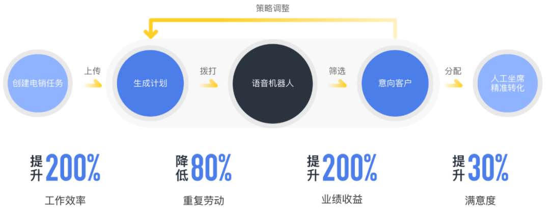 在实际业务应用中,得助智能语音机器人主要运用于该银行营销外呼及客户服务如活动邀约及通知回访等场景,通过高效智能外呼,打通与用户的连接触点,降低人力外呼压力,提升整体外呼效率,增强与用户的互动与粘性。