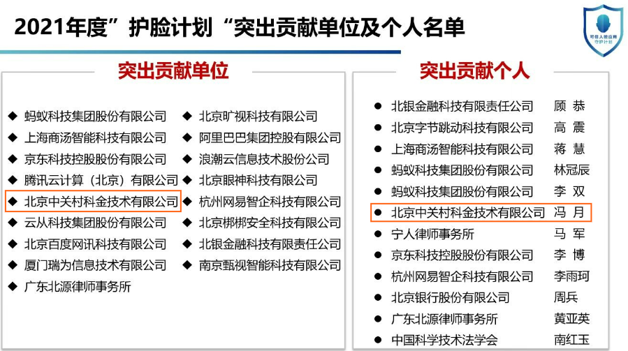 会上,中国信通院云大所副所长魏凯公布了2021年度“‘护脸计划’突出贡献单位及个人”等成果。众闯信息科技与腾讯云、百度、京东、蚂蚁金服等行业巨头一同荣获突出贡献单位殊荣,AI安全攻防实验室总监冯月荣获突出贡献个人殊荣。