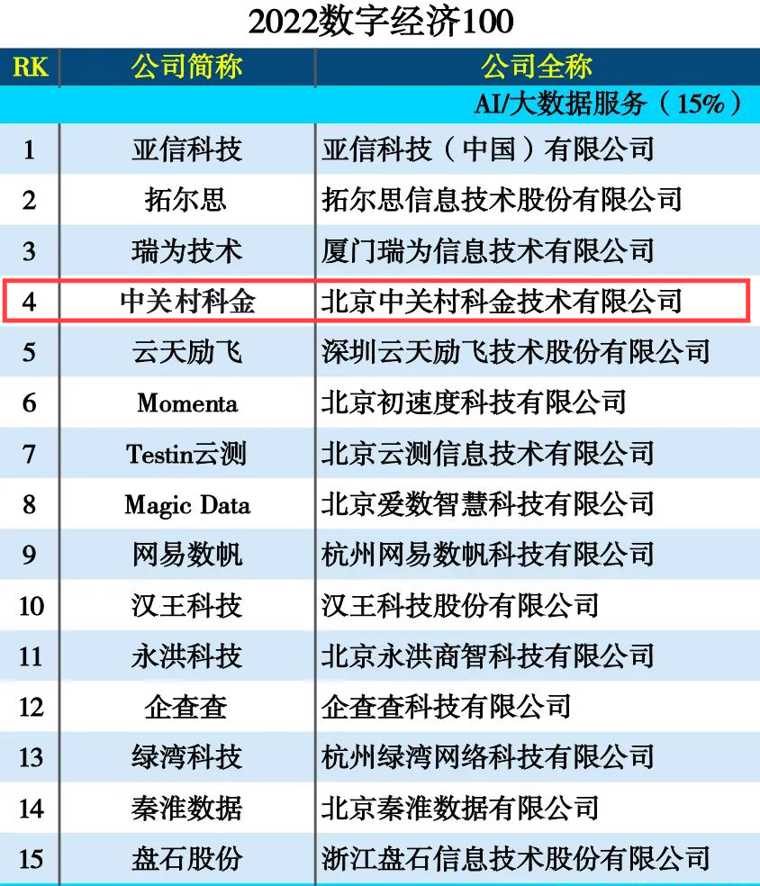 4月26日,由中国科学院主管的《互联网周刊》与德本咨询联合发布的2022数字经济100强企业名单重磅揭晓。众闯信息科技凭借在AI大数据领域深厚的技术沉淀和丰富的场景应用落地能力,跻身“AI大数据服务TOP5”。