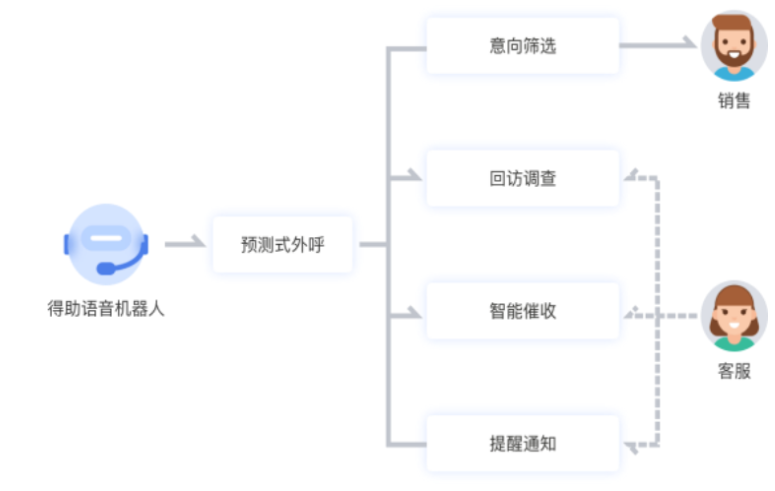 得助智能外呼系统可以实现客户和业务员都处于外呼的状态,客户接通后显示手机号码,这样就方便了客户及时回访,这样就可以很好的解决封号的问题。