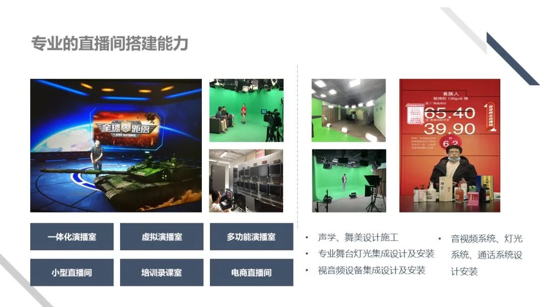 众闯信息科技持续为企业客户提供安全、稳定、有温度的直播服务,得到500+行业头部企业客户的信赖与认可。针对企业日益增长的直播间搭建需求,众闯信息科技提供包含灯光布置、声音采集和全套设备,从技术平台、拍摄、到策划运营的一站式直播服务解决方案,为企业省事省心,助力企业高效开展直播。