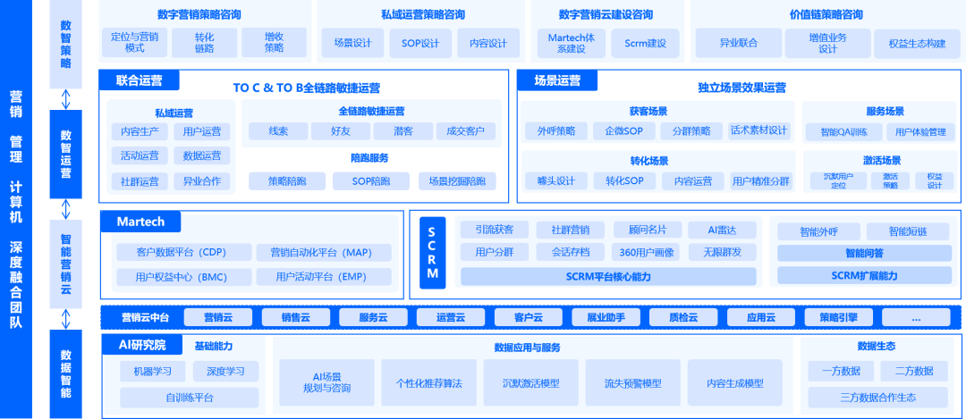 以营销行业为例,众闯信息科技基于对话式AI技术,通过将MAP平台、智能外呼机器人、文本机器人、RPA结合,构建一体化营销云产品。在为某消金线上业务服务中,将营销的SOP流程标准化后沉淀下来,配置在营销自动化模块中,基于用户分层实现自动化群发、自动化回复、自动化标签等,打造全新的私域自动化运营体系,营销转化率提升30%、人力成本下降60%,帮助客户实现降本增效。
