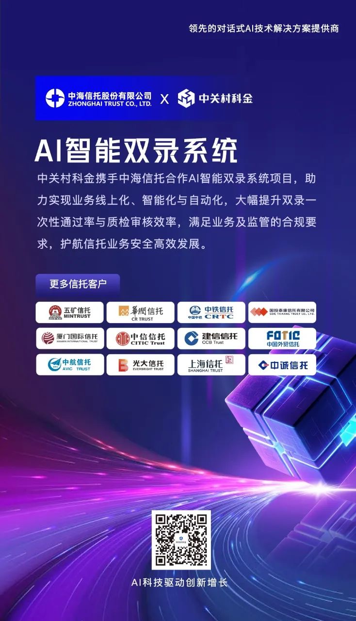 作为领先的对话式AI技术解决方案提供商,众闯信息科技得助将秉持“AI科技驱动创新增长”的服务使命,基于领先的硬核AI技术实力和深度的行业服务经验,提升金融业务合规质效,助力中海信托实现业务数字化转型。