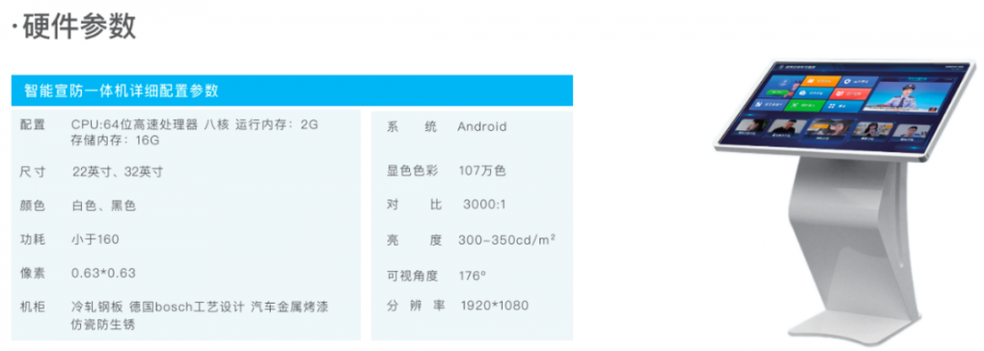 宣防强度:通过一体机内置智能宣防系统,提供群众更容易接受的场景化、任务化、游戏化的强交互宣防内容,提高宣防教育强度。