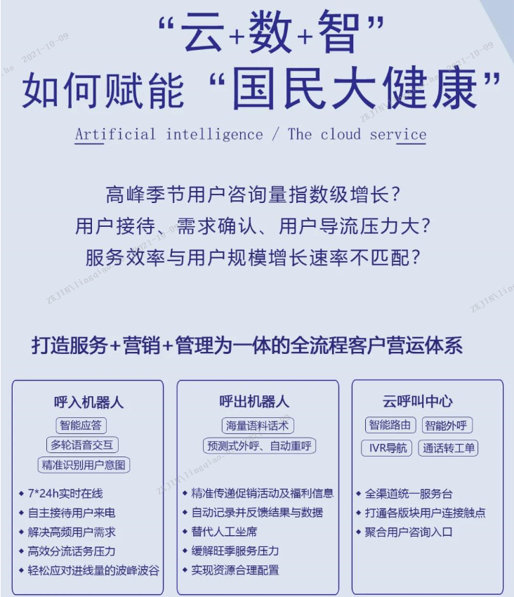 通过外呼机器人、呼入机器人、云呼叫中心等产品,助力爱康国宾补充智能化服务能力的缺失,降低人力成本,提升服务效率,优化服务管理质量。