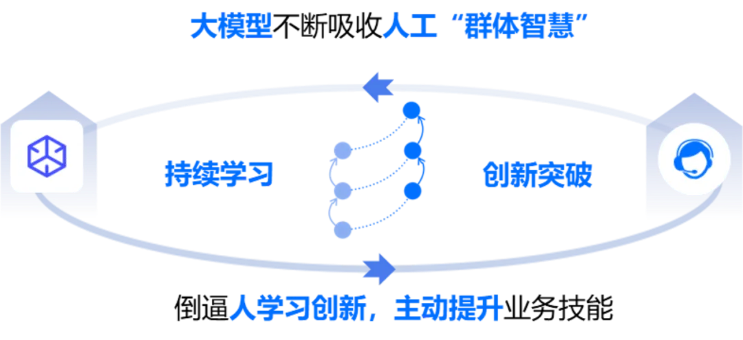 总体来讲,【电销大模型】通过持续学习优秀话术,营销能力向绩优坐席无限趋近,同时激发人工坐席提升专业技能、精进业务知识,完成更高价值的工作,并向【电销大模型】提供更多学习“榜样”,让机器人继续学习进步,再次奋力追赶人工营销能力,形成机器人与人工坐席“你追我赶”的良性循环态势。