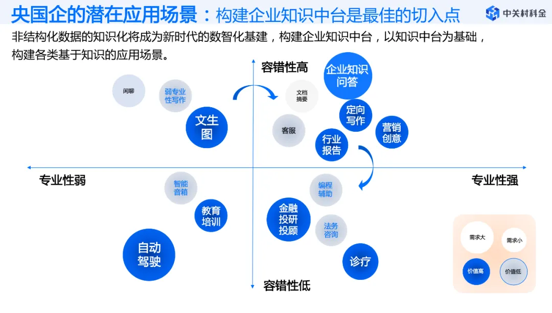 不管是央国企还是其他企业,或多或少都有自己的行业特性、专属的知识,但没有开发出相关应用,现在大模型可以基于统一知识库进度更快、成本更低地开发应用。
