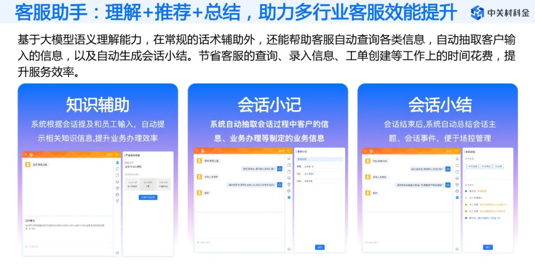 很多行业都需要客服,把潜在的答案实时显示在坐席系统的侧边栏上,可以供坐席为客户快速提供解答。在一通电话打完后,原来坐席还要填写会话小结、后续需要处理工单,现在客服助手只需员工简单校验,便可形成自动化小结、工单填写,大量节约坐席宝贵的人力时间。
