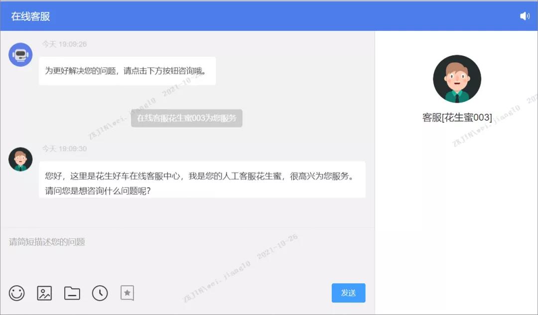 目前,花生好车官网、APP等渠道已接入得助智能客服机器人,为保障用户咨询的积极响应,实现7*24 小时全天在线需求,保障了人工客服不在线时段的用户接待,随时为用户提供服务。