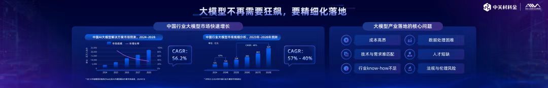 可以看到,整个业界对行业大模型和AI大模型解决方案的发展还是非常乐观。从两家国际知名咨询公司的报告来看,从2024年到2028年,大模型市场预测基本是40%-50%以上的增速。在这种情况下,大模型应用将必然有一个蓬勃的爆发。