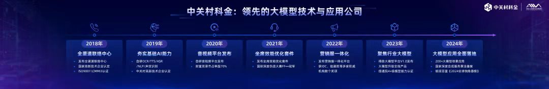 对众闯信息科技来说,我们定位是领先的大模型技术与应用公司。在2018年,我们发布了全媒体联络中心。2019年把传统的基础AI能力,如OCR、TTS、ASR用到了平台智能化里。众闯信息科技一直紧随着人工智能技术,从上一代以CV和语音为主的智能化技术到现在的大模型技术,一直跟随着大模型技术不断演进,面向企业的服务和产品进行升级。2020年发布了音视频平台、远程双录等,其中用到如OCR、人脸识别技术,让双录场景效率和效果更优。2021年发布了坐席效能优化套件,2022年发布了营销服一体化平台,2023年发布了行业大模型。2024年,一年的过程中我们不断利用大模型能力重构所有的应用产品。