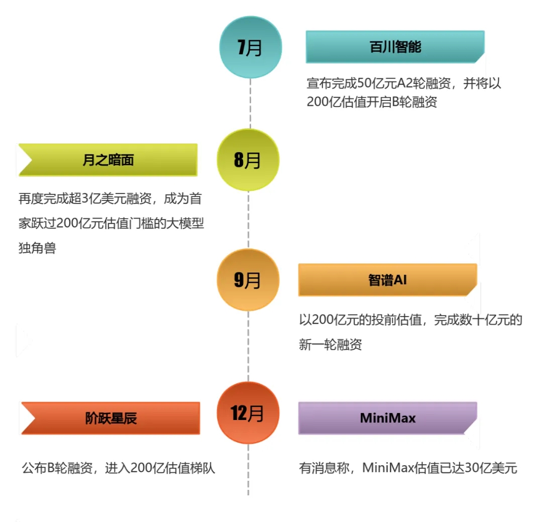 彼时,仍在全力追逐AGI的“六小虎”们,为了避免在预训练赛道掉队,纷纷实现了对200亿估值门槛的“摸高”。