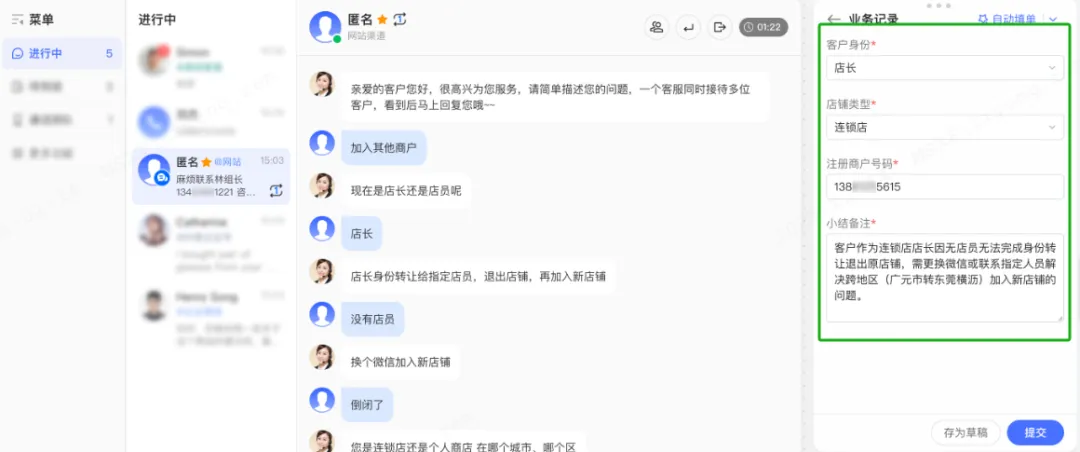 场景:在人工坐席为客户服务的过程中,填写客户信息、工单信息以及业务记录是一项极为繁琐且耗费精力的工作。一旦出现填写错误,不仅会增加客户运营成本,严重时甚至可能引发客诉。智能填单作为解决这一难题的核心方案,借助平台的语义识别和会话洞察技术,能够自动从客户与坐席的交互内容里提取相关信息,并辅助坐席进行自动填写,从而有效减轻客服压力,提升坐席的工作体验。