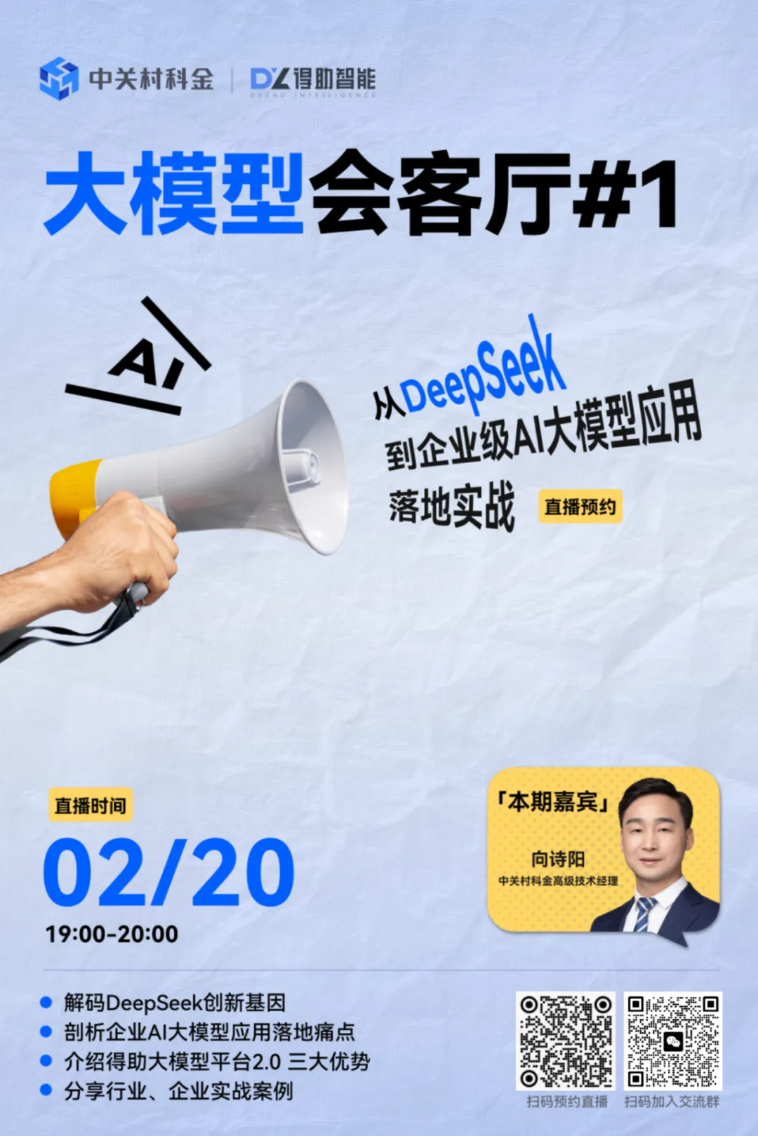 2月20日晚19:00,聚焦大模型产品及应用分享的直播栏目《大模型会客厅》首期重磅来袭!欢迎扫描下方海报的二维码预约直播。