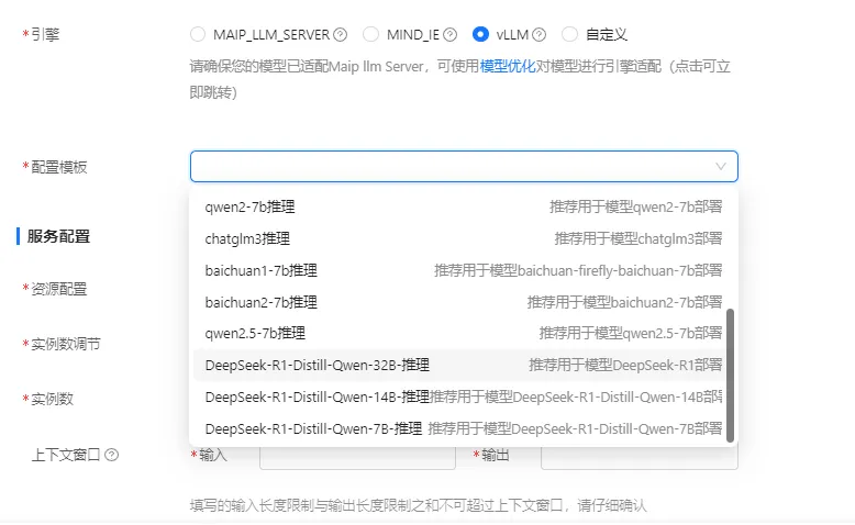 第2步,配引擎:勾选vLLM,选择对应服务配置,无需手动调试;