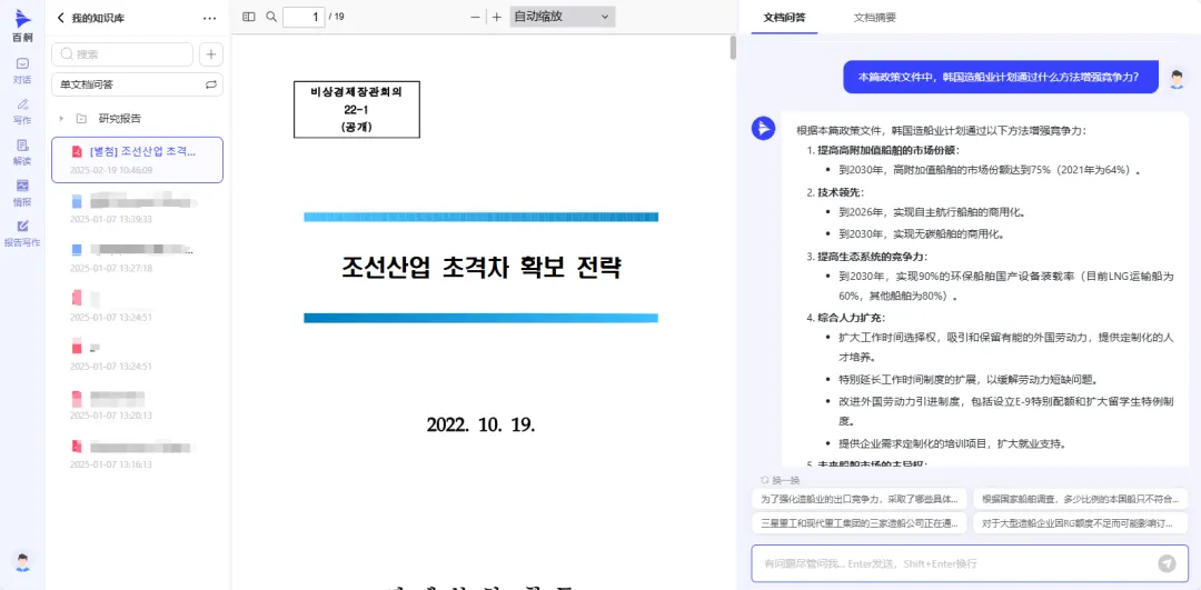 跨语种问答交互。支持使用中文对英、日、韩等多语种的文档进行问答,迅速掌握外文长文档核心内容。