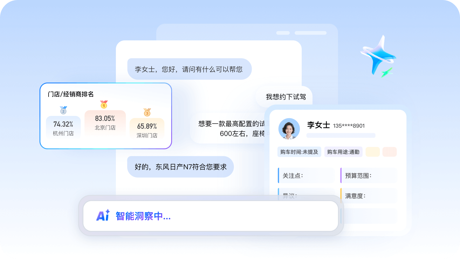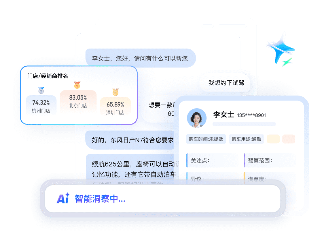 AI自动拆解客户对话,无需人工听录即精准提取核心信息,量化沟通质量与需求点。